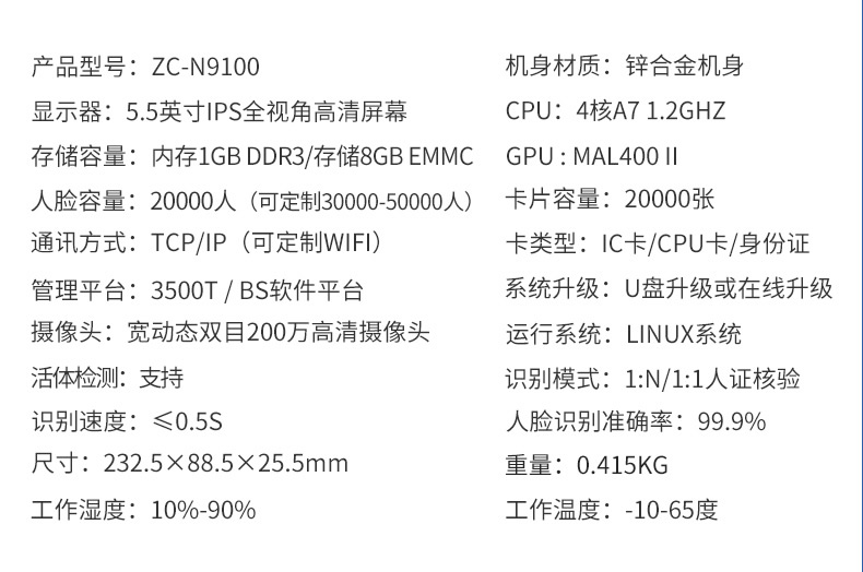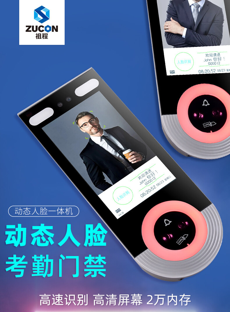 ZUCON祖程N9100T動態(tài)人臉識別門禁系統(tǒng)一體機考勤打卡刷臉門禁系統(tǒng)玻璃門禁
