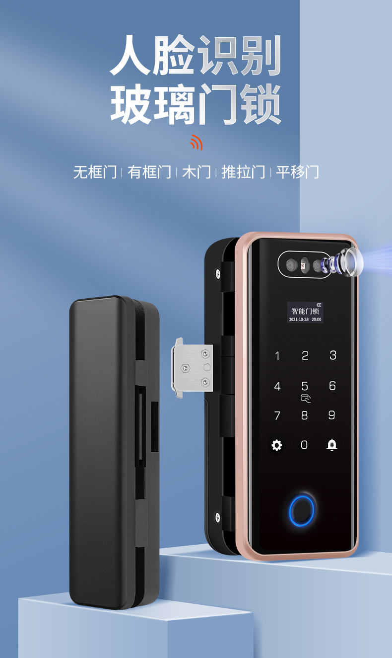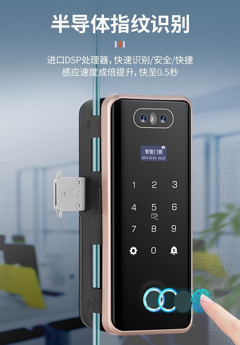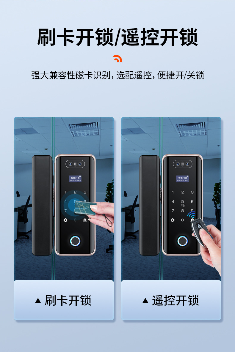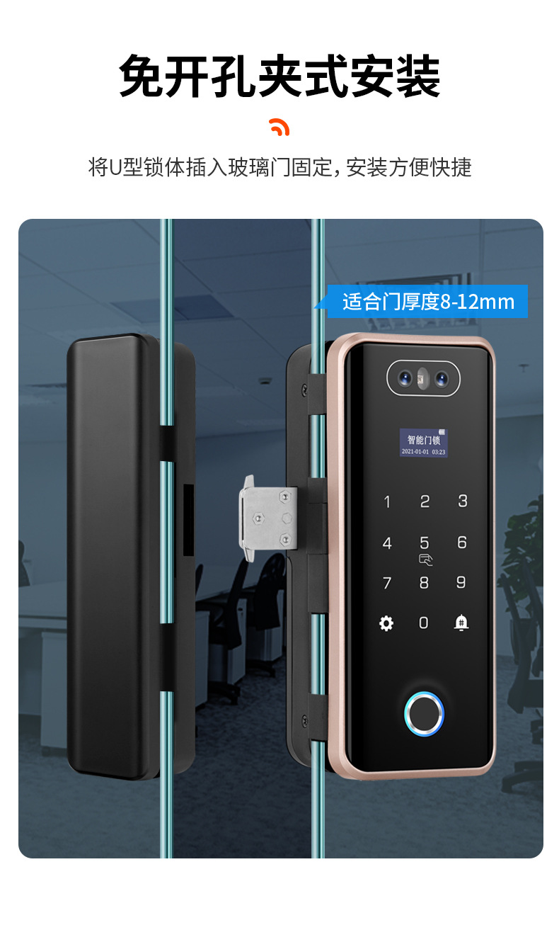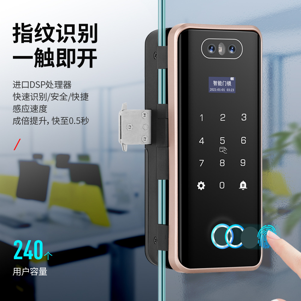 ZUCON祖程F628人臉識(shí)別玻璃門指紋鎖免開孔辦公室單開雙門有框密碼鎖