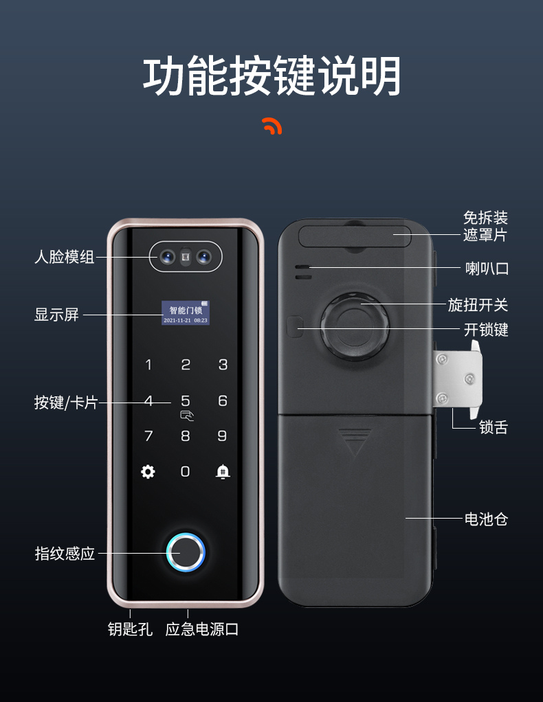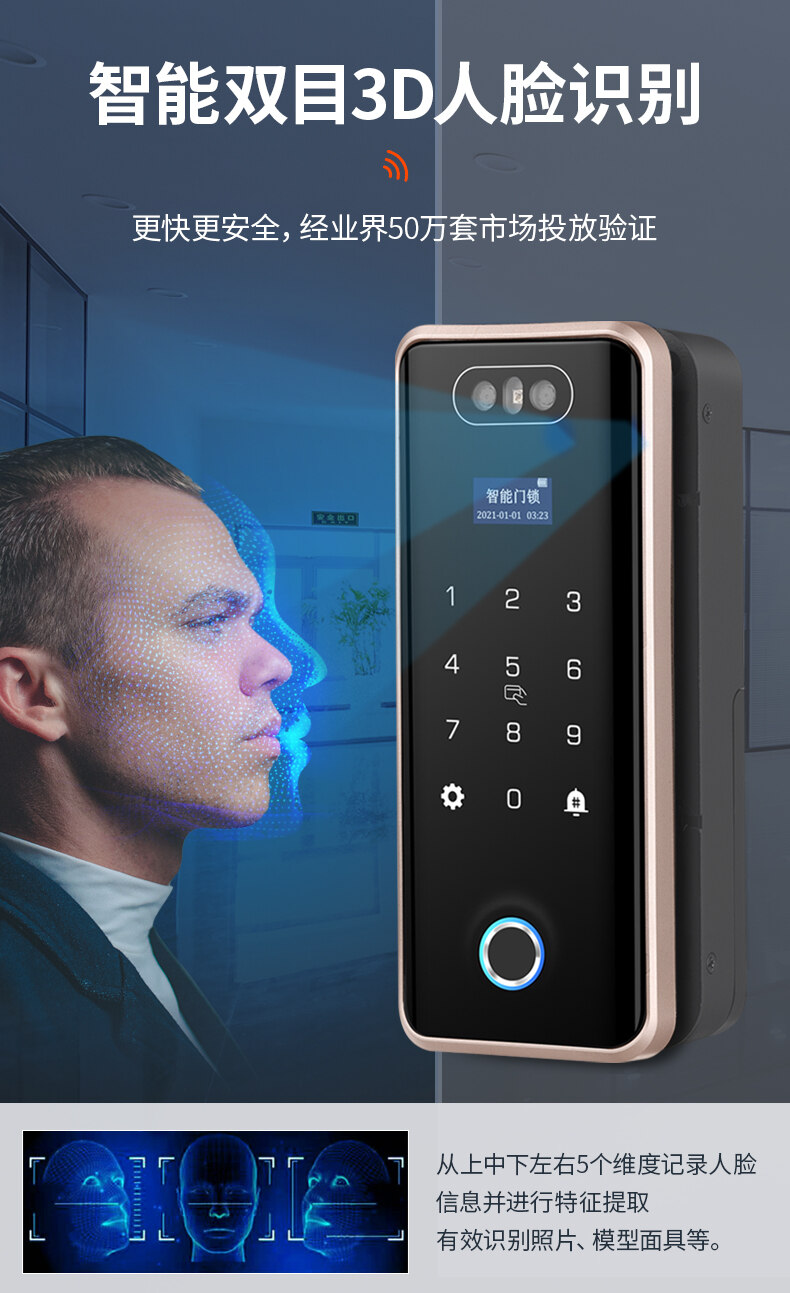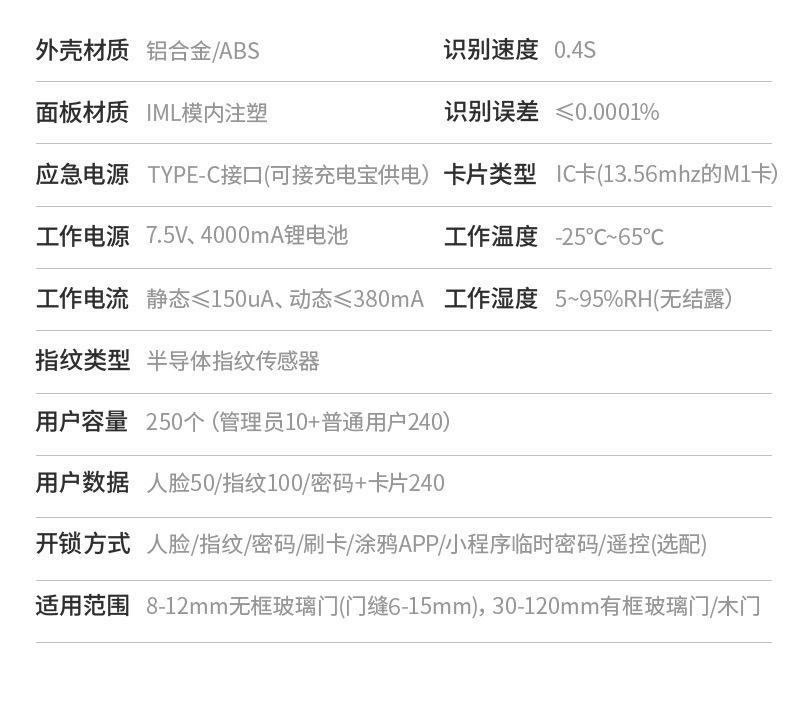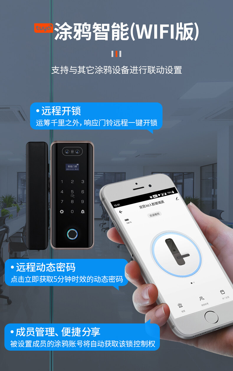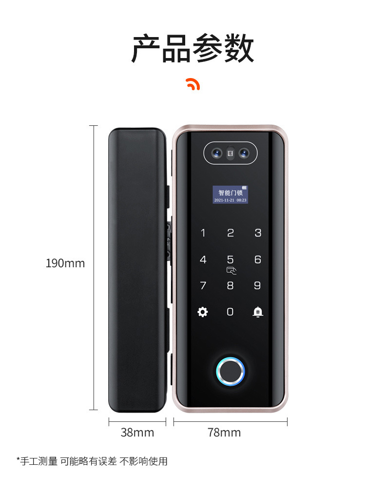 ZUCON祖程F628人臉識(shí)別玻璃門指紋鎖免開孔辦公室單開雙門有框密碼鎖