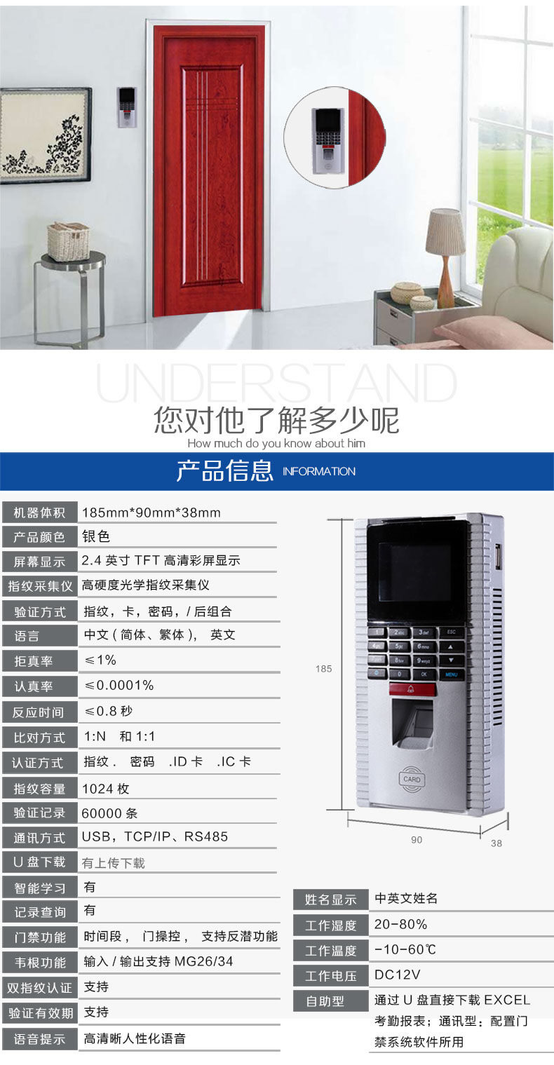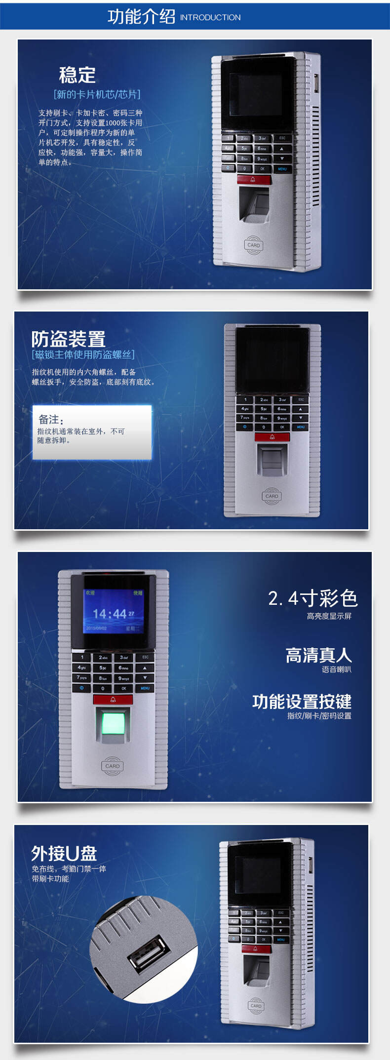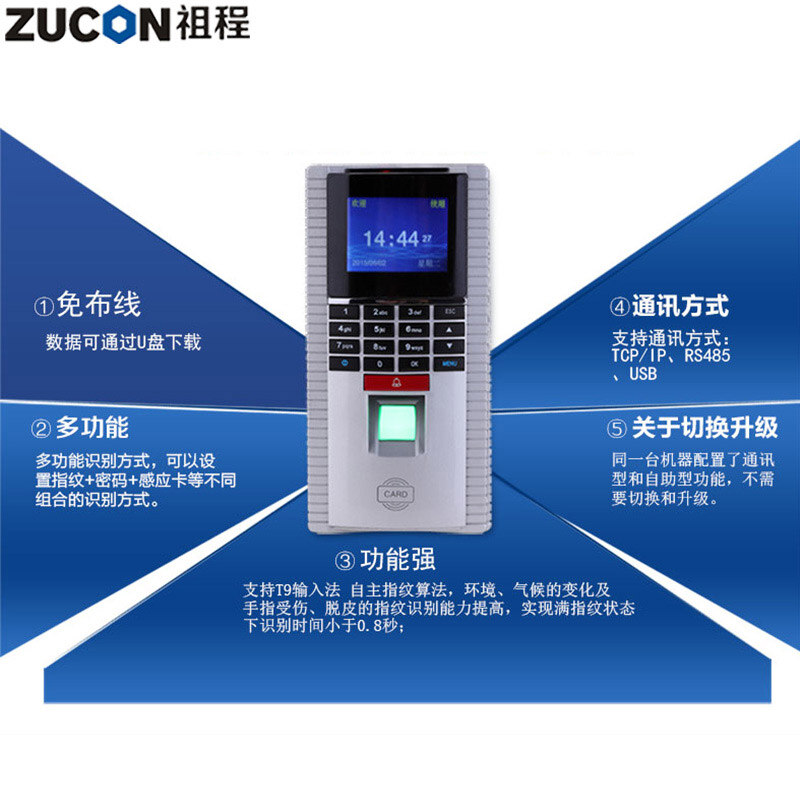 ZUCON祖程H10指紋門(mén)禁一體機(jī) 門(mén)禁考勤主機(jī) 網(wǎng)絡(luò)U盤(pán)下載 門(mén)禁系統(tǒng)