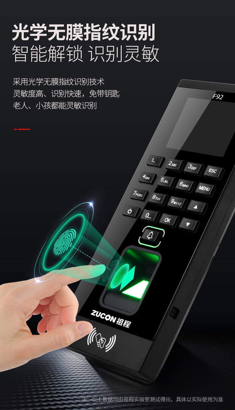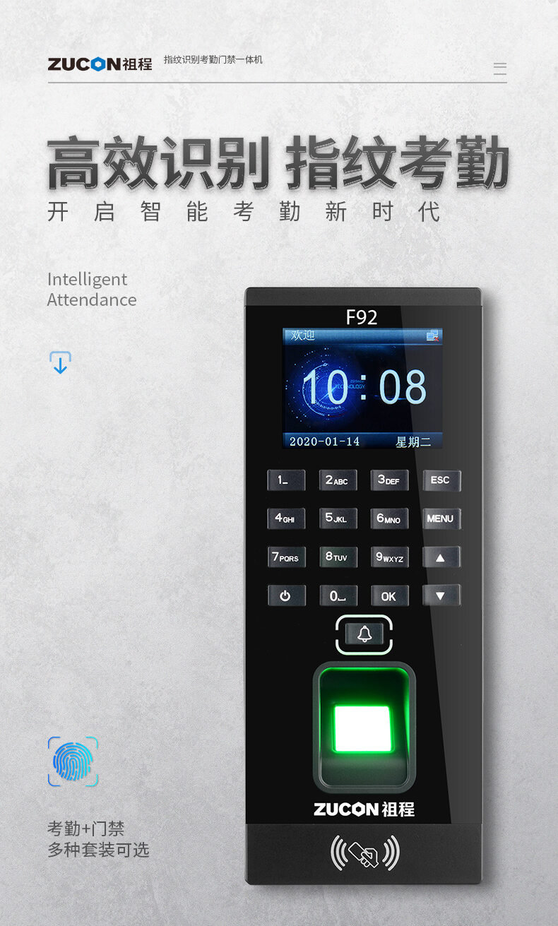 ZUCON祖程F92門禁一體機指紋刷卡密碼門禁系統(tǒng)一體機帶考勤門禁主機