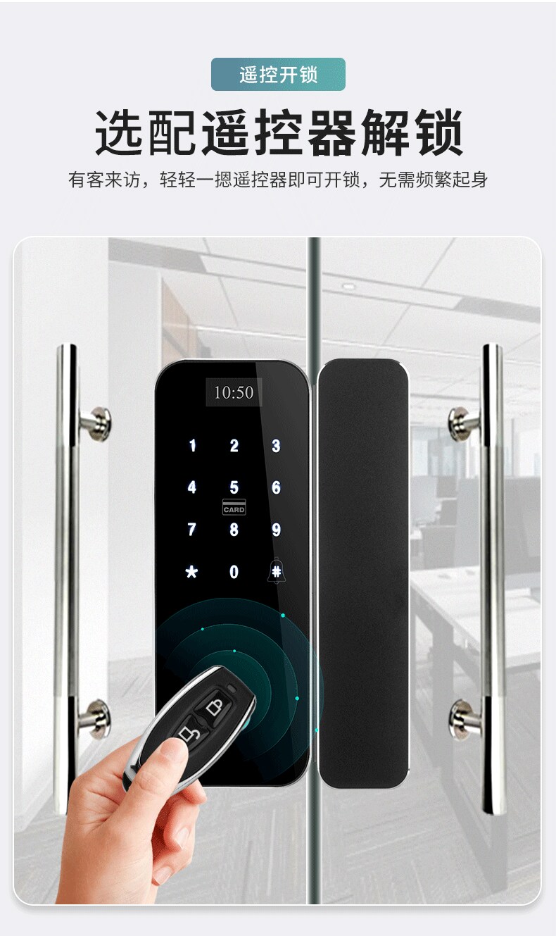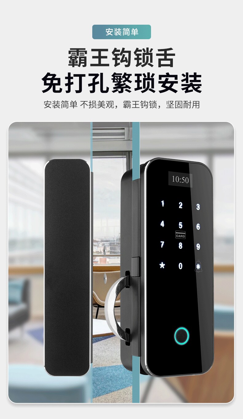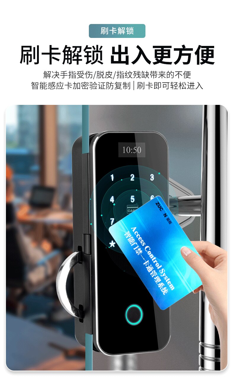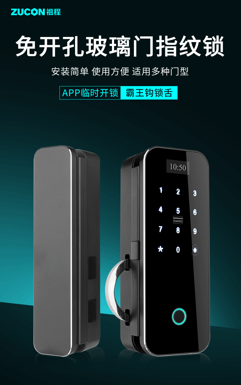 ZUCON祖程F491辦公室玻璃門鎖推拉平移門指紋密碼鎖電子密碼鎖免開孔