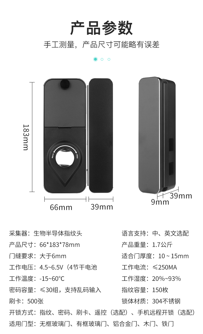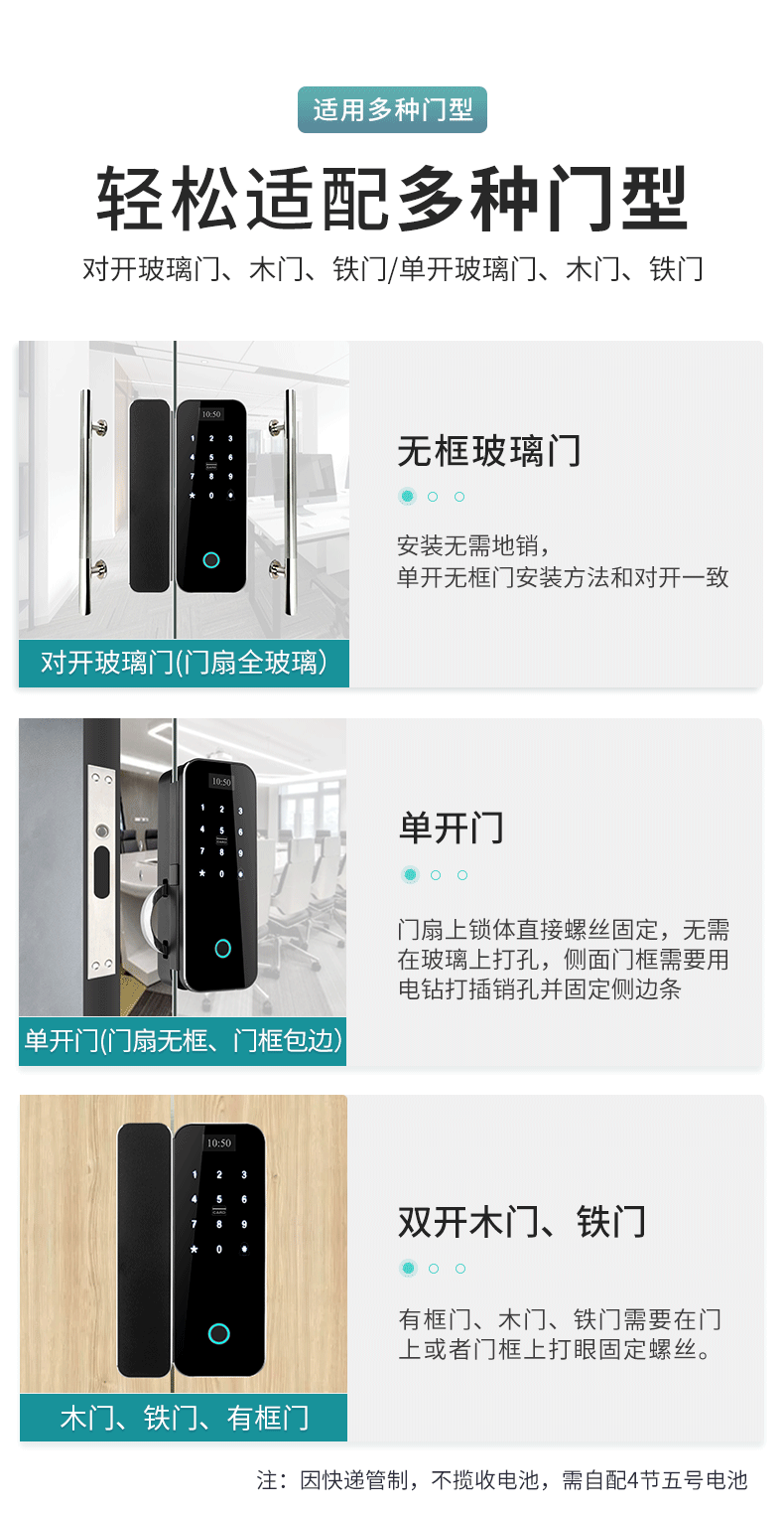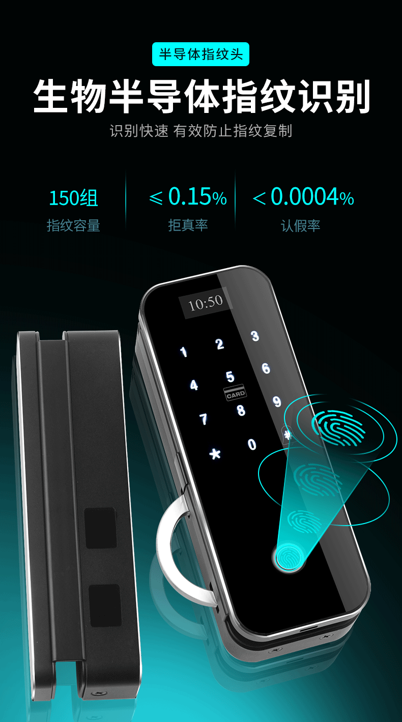 ZUCON祖程F491辦公室玻璃門鎖推拉平移門指紋密碼鎖電子密碼鎖免開孔