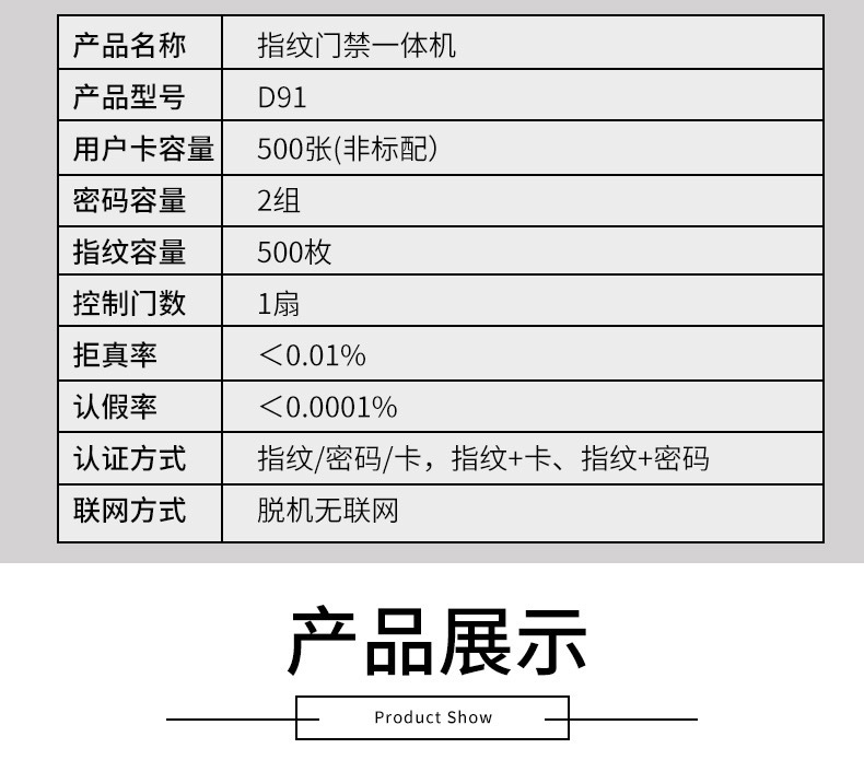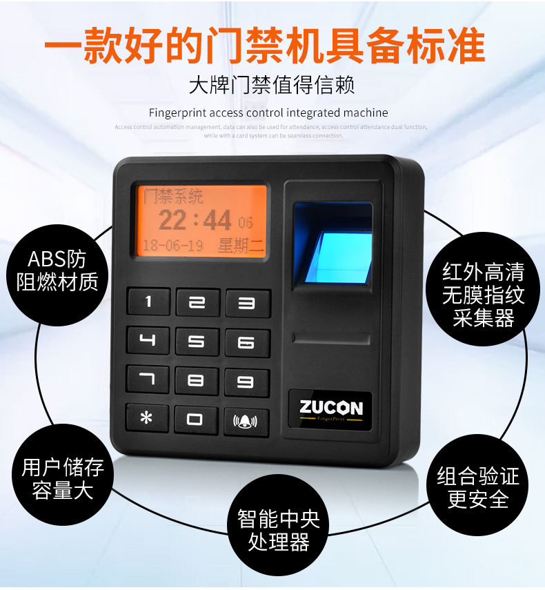 ZUCON祖程D91指紋門禁一體機 刷卡密碼門控主機控制器紅外高清指紋頭