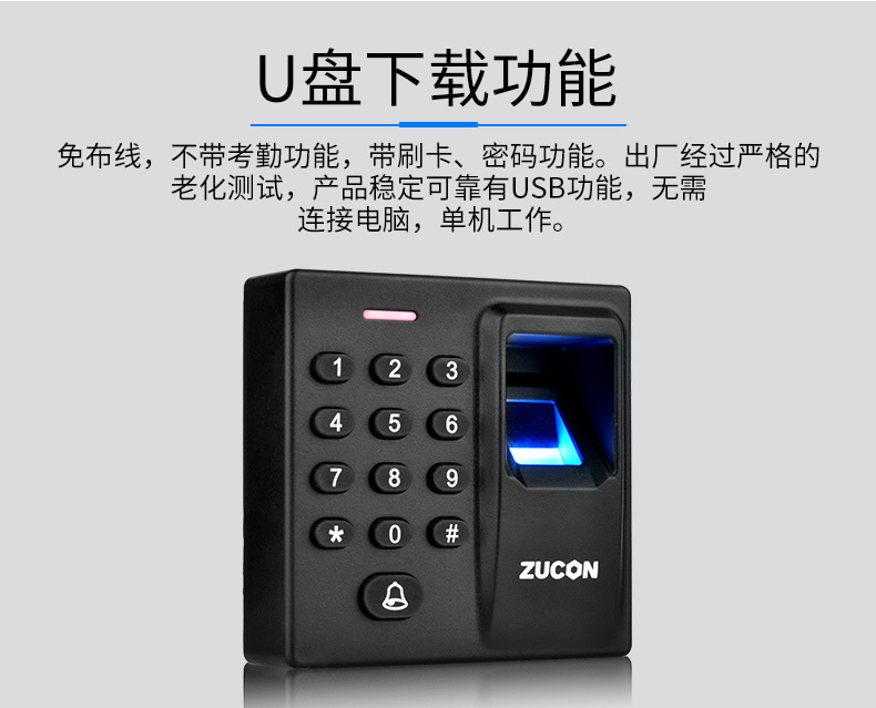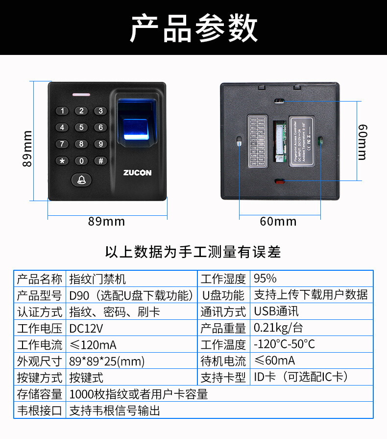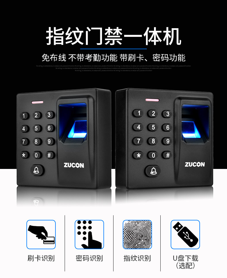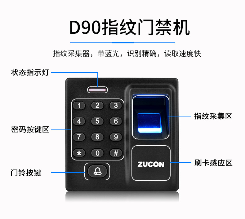 ZUCON祖程D90指紋門禁一體機(jī) 刷卡密碼門控主機(jī)控制器WG韋耕指紋讀頭
