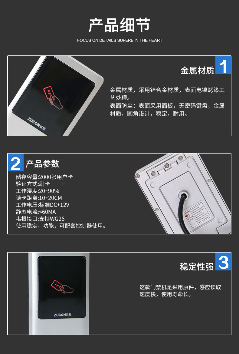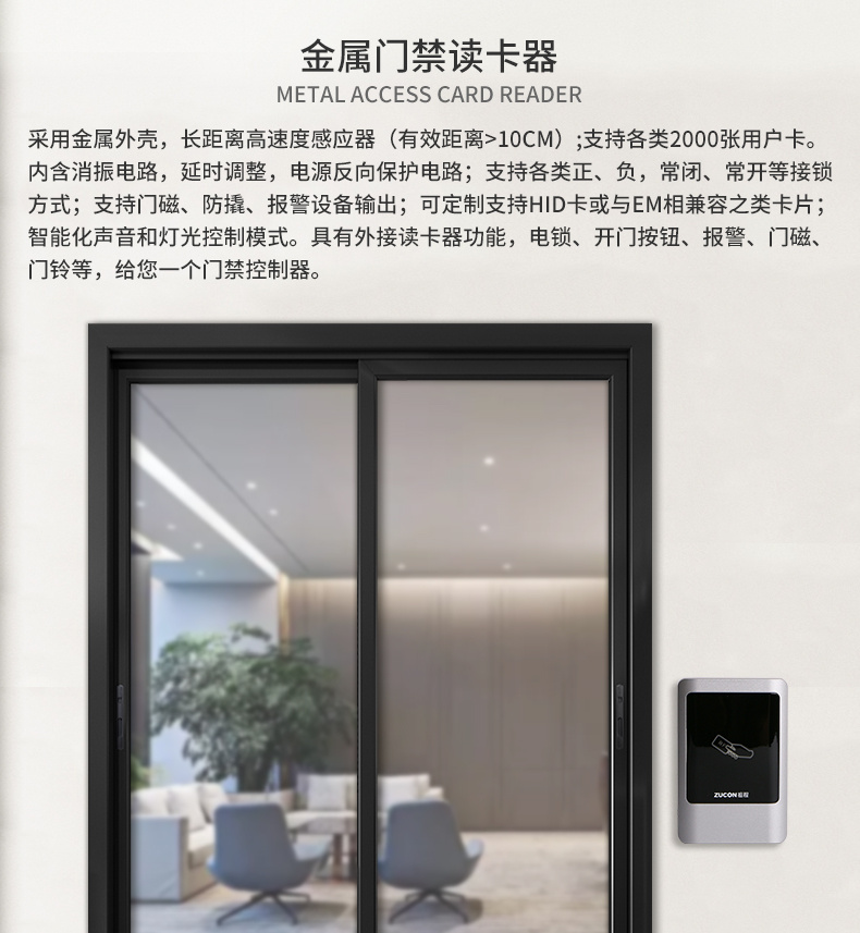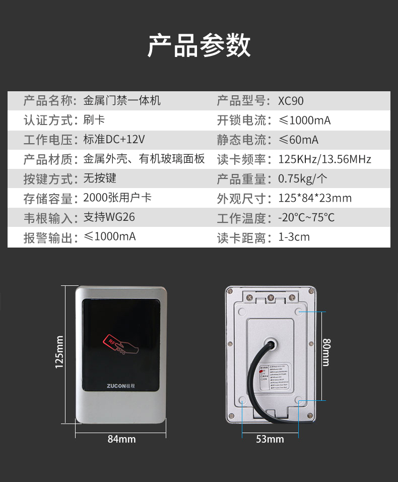 ZUCON祖程XC90金屬門禁讀卡器 室外門禁一體機(jī)防水門禁系統(tǒng)讀頭