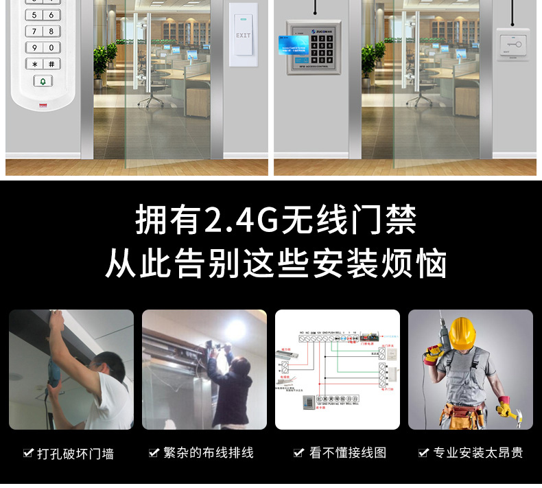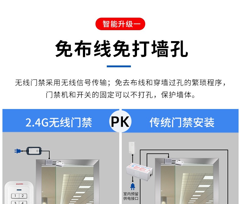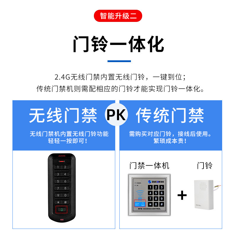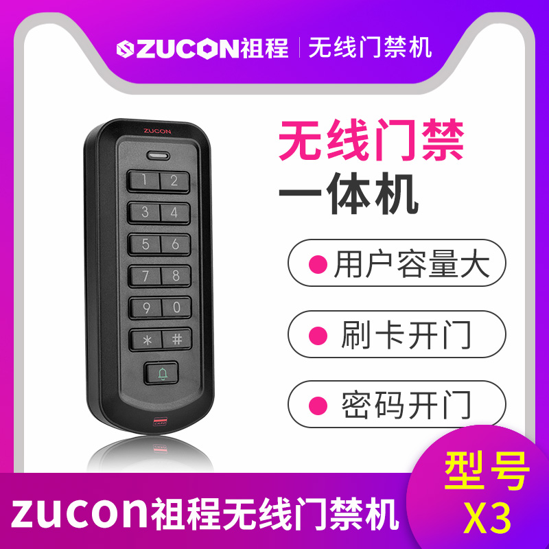 ZUCON祖程2.4G-X3祖程無(wú)線門(mén)禁機(jī)免布線遙控開(kāi)鎖刷卡密碼一體機(jī)電插鎖磁力鎖