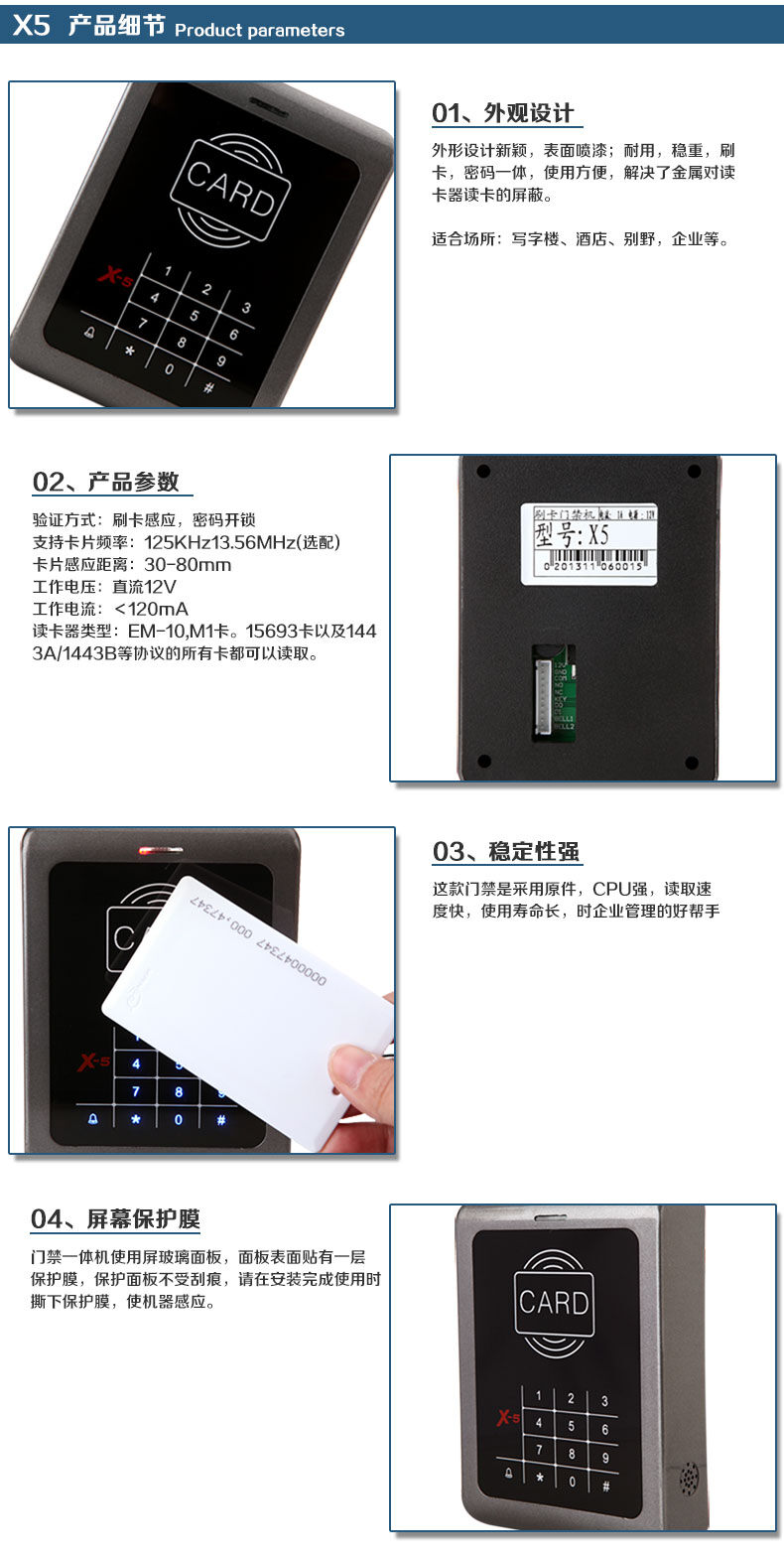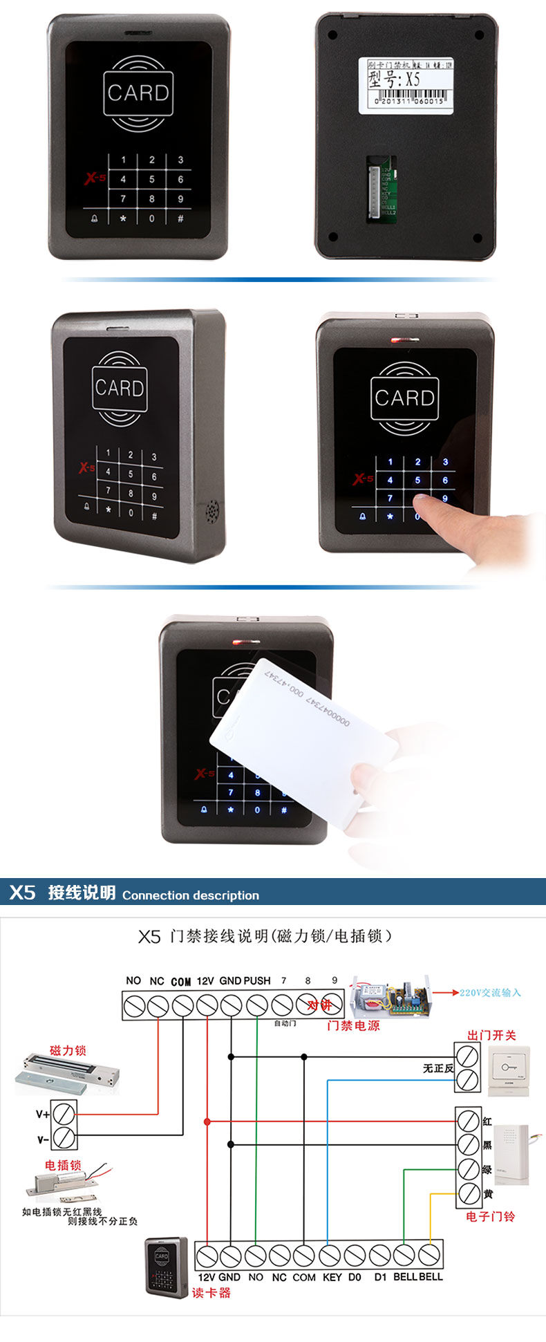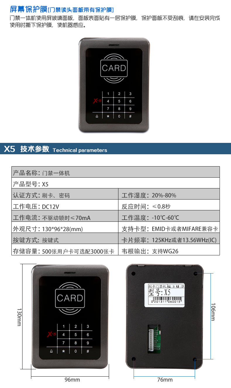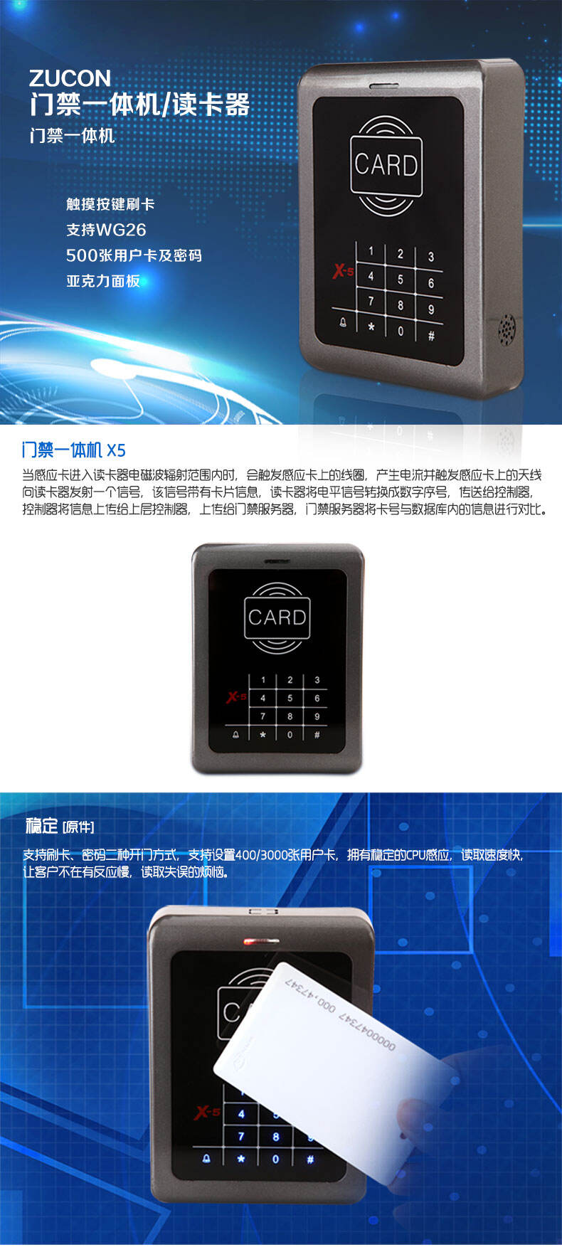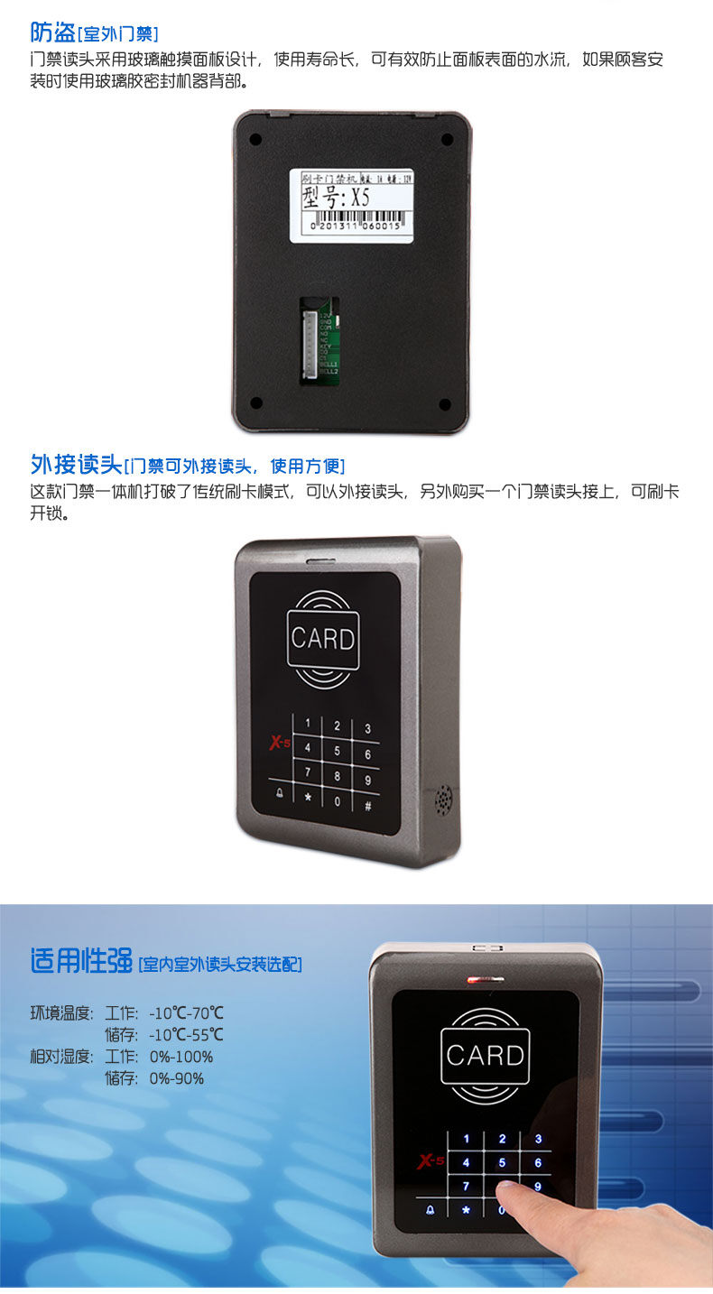 ZUCON祖程X5觸摸按鍵一體機(jī) ID、IC卡 刷卡密碼開鎖 門禁機(jī)