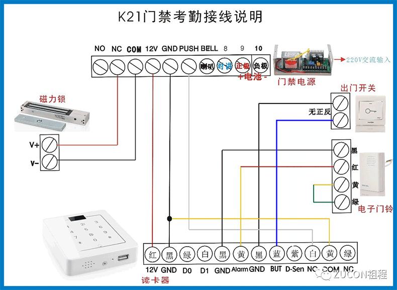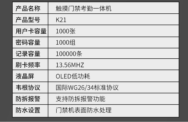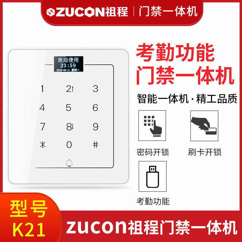 ZUCON祖程K21門禁考勤機觸摸門禁機機刷卡機密碼機帶U盤下載功能