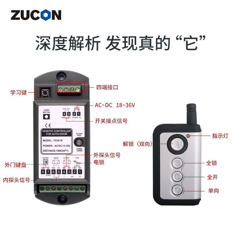 ZUCON祖程自動門感應(yīng)門配套遙控四通道遙控控制器多功能遙控器