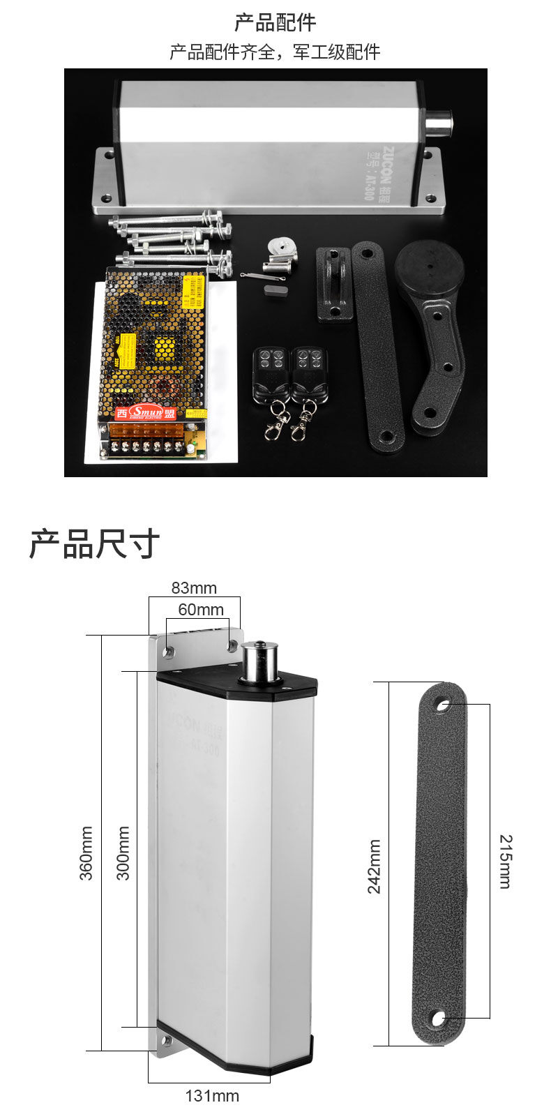 ZUCON祖程AT300側(cè)裝平開門機電動開門機自動閉門器曲臂式小區(qū)大門90度室外開門