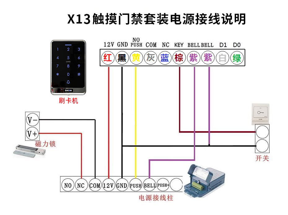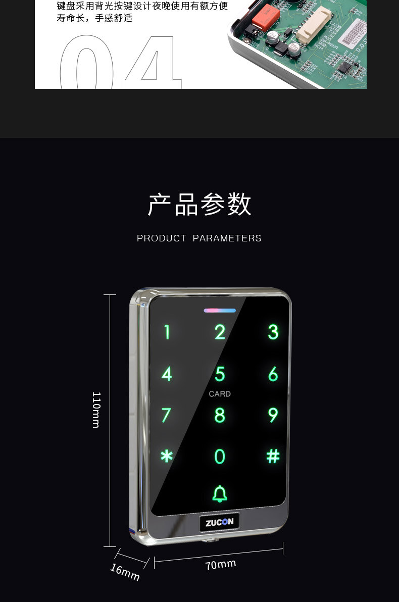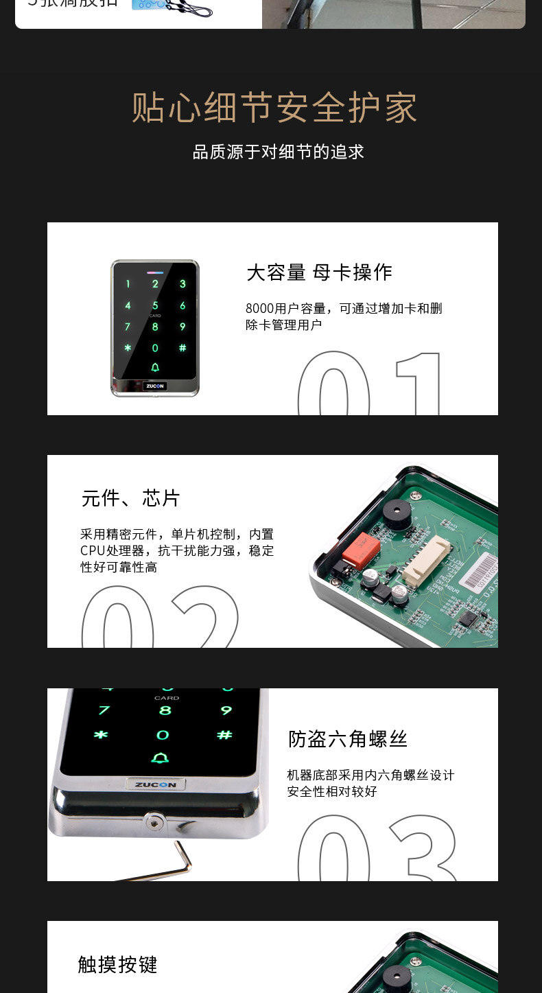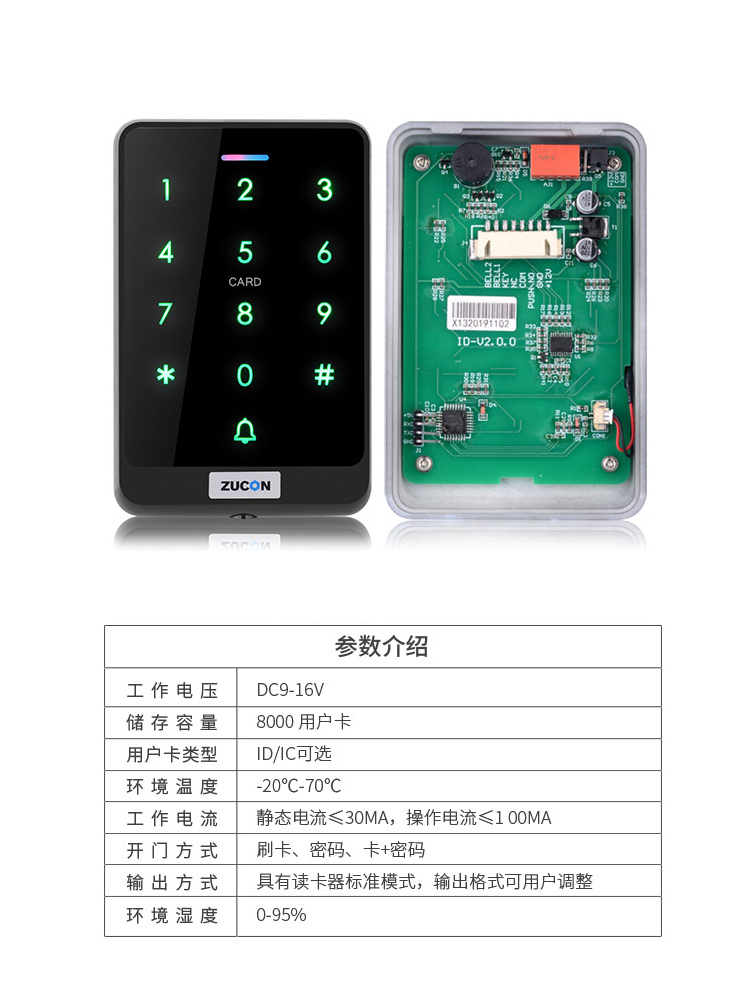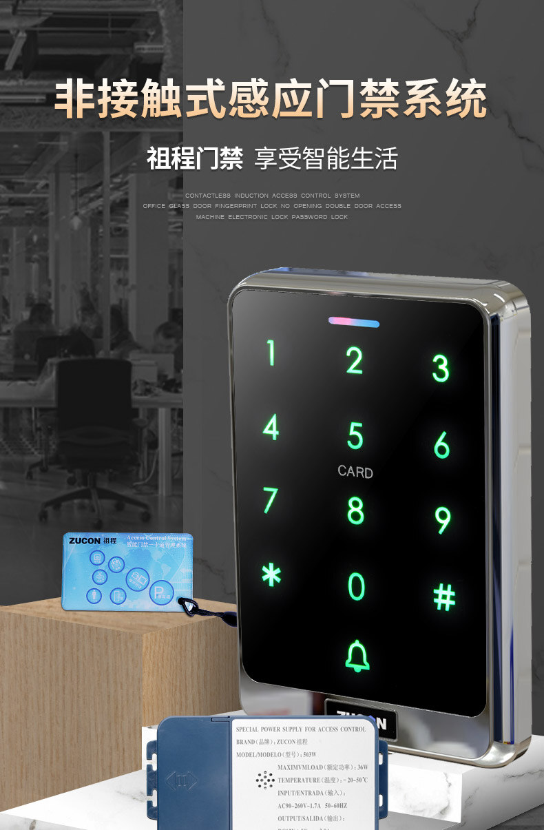 ZUCON祖程X13觸摸門(mén)禁系統(tǒng)ID選配IC刷卡電子密碼一體機(jī)配套磁力鎖電插鎖