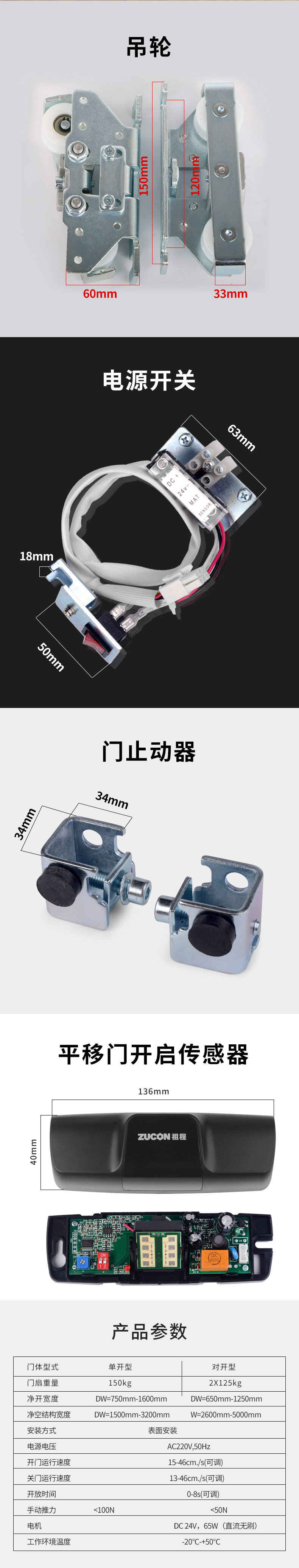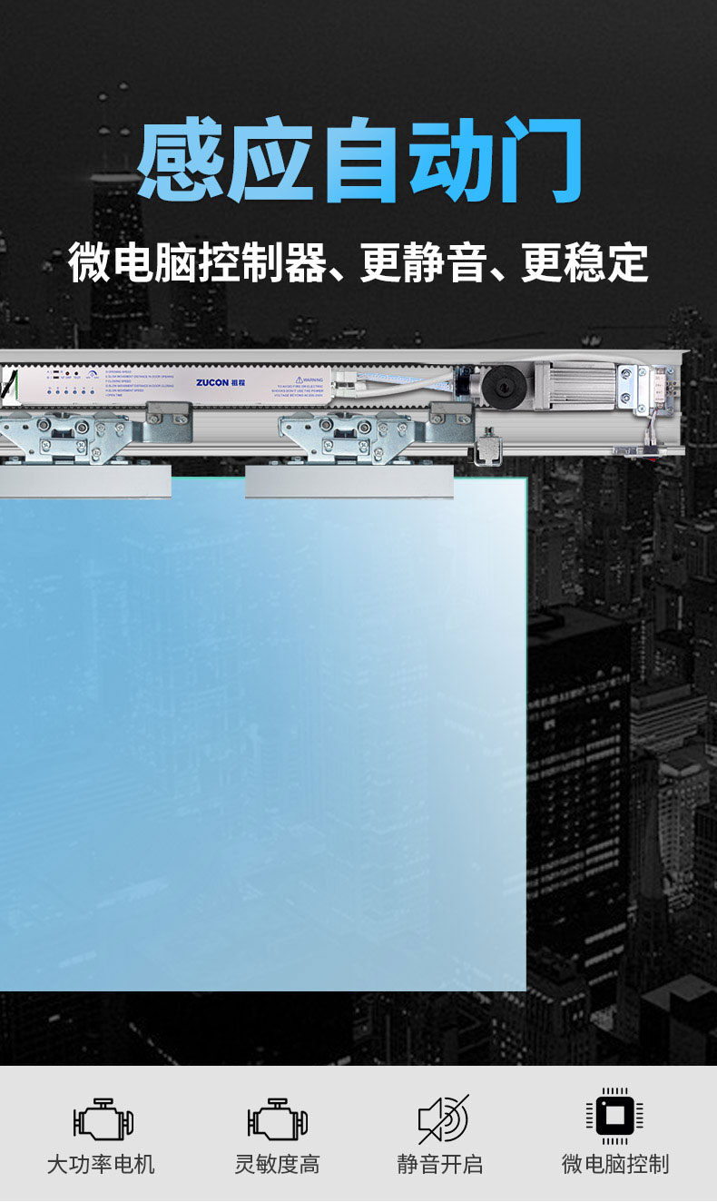 ZUCON祖程AT100輕型自動感應平移門機組電動玻璃門感應門電機整套電動門禁系統(tǒng)