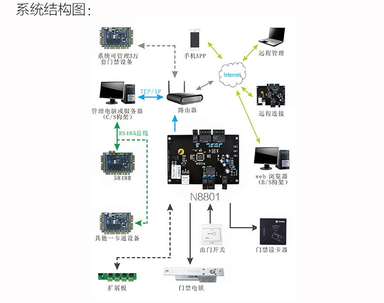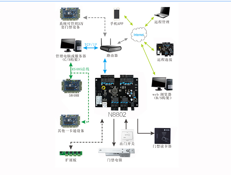 ZUCON祖程N8800系列聯(lián)網(wǎng)網(wǎng)絡門禁控制器門禁考勤主機智能單雙四門多門控制主板